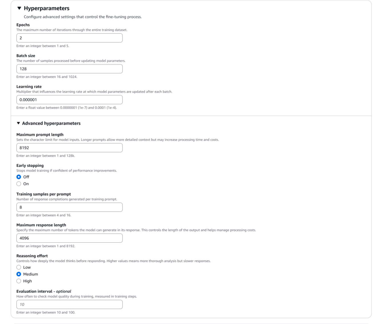 Let’s walk through creating a reinforcement fine-tuning job.
