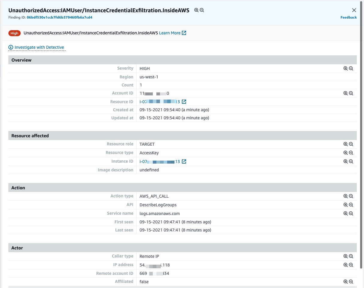 Since the launch of GuardDuty, it has detected when such credentials are used from IP addresses outside of AWS. Smart attackers therefore might hide their activity from another AWS account to operate outside of the sight of GuardDuty. Starting today, GuardDuty also detects when the credentials are used from other AWS accounts, inside the AWS network.