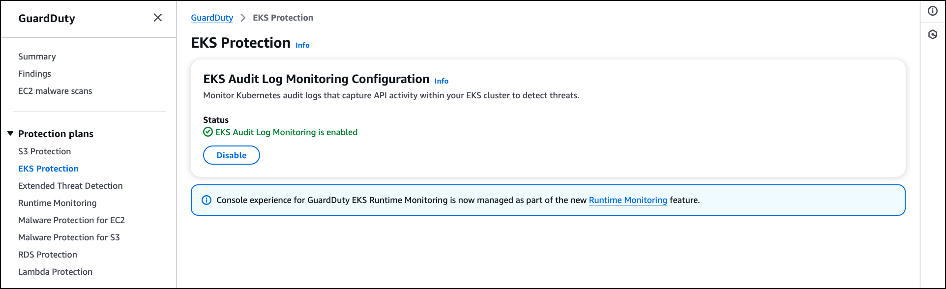 To start using this expanded coverage, enable EKS Protection in your GuardDuty settings and consider adding Runtime Monitoring for enhanced detection capabilities.
