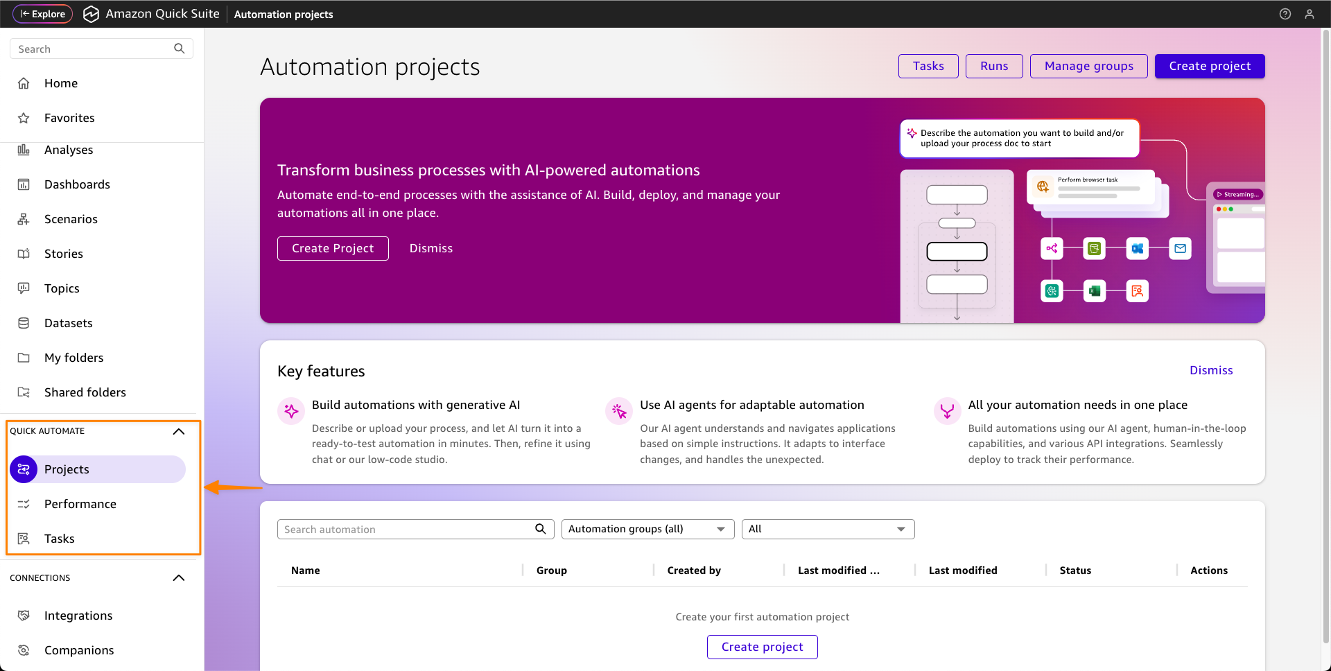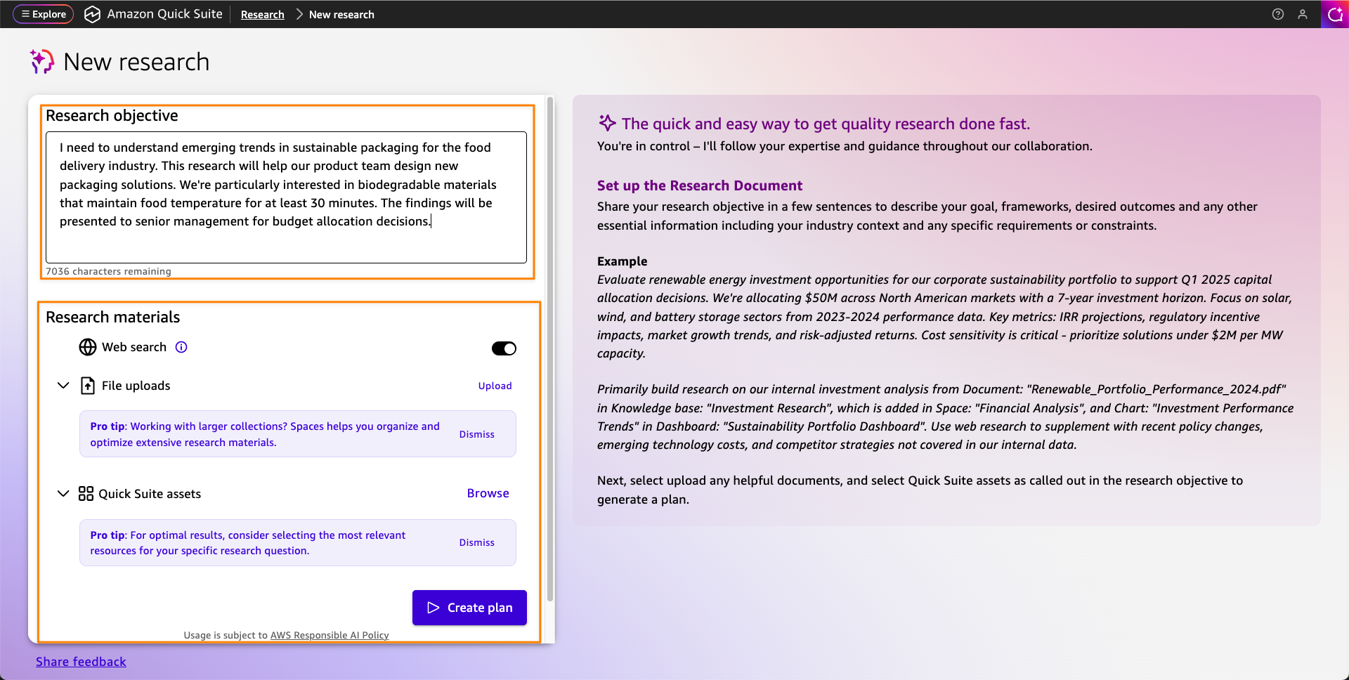 Quick Suite helps you overcome these challenges by combining agentic teammates for research, business intelligence, and automation into a unified digital workspace for your day-to-day work.