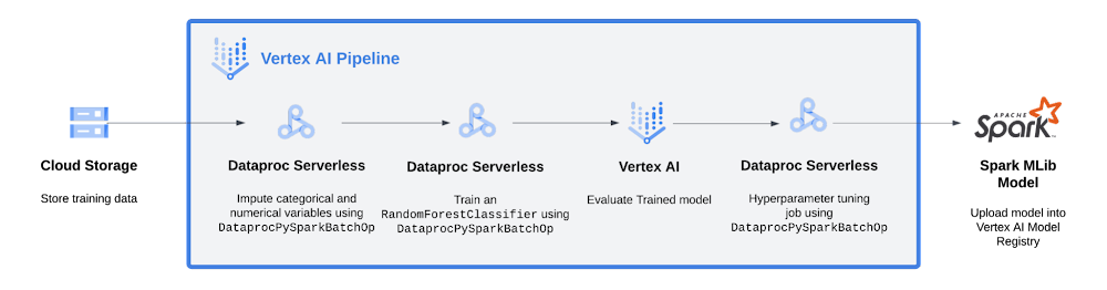 In this blogpost, we announced new Dataproc componentsnow available for Vertex AI Pipelines. We also provided an end-to-end example of how to use the DataprocPySparkBatchOp to preprocess data, train and hypertune a PySpark MLlib model for loan eligibility.