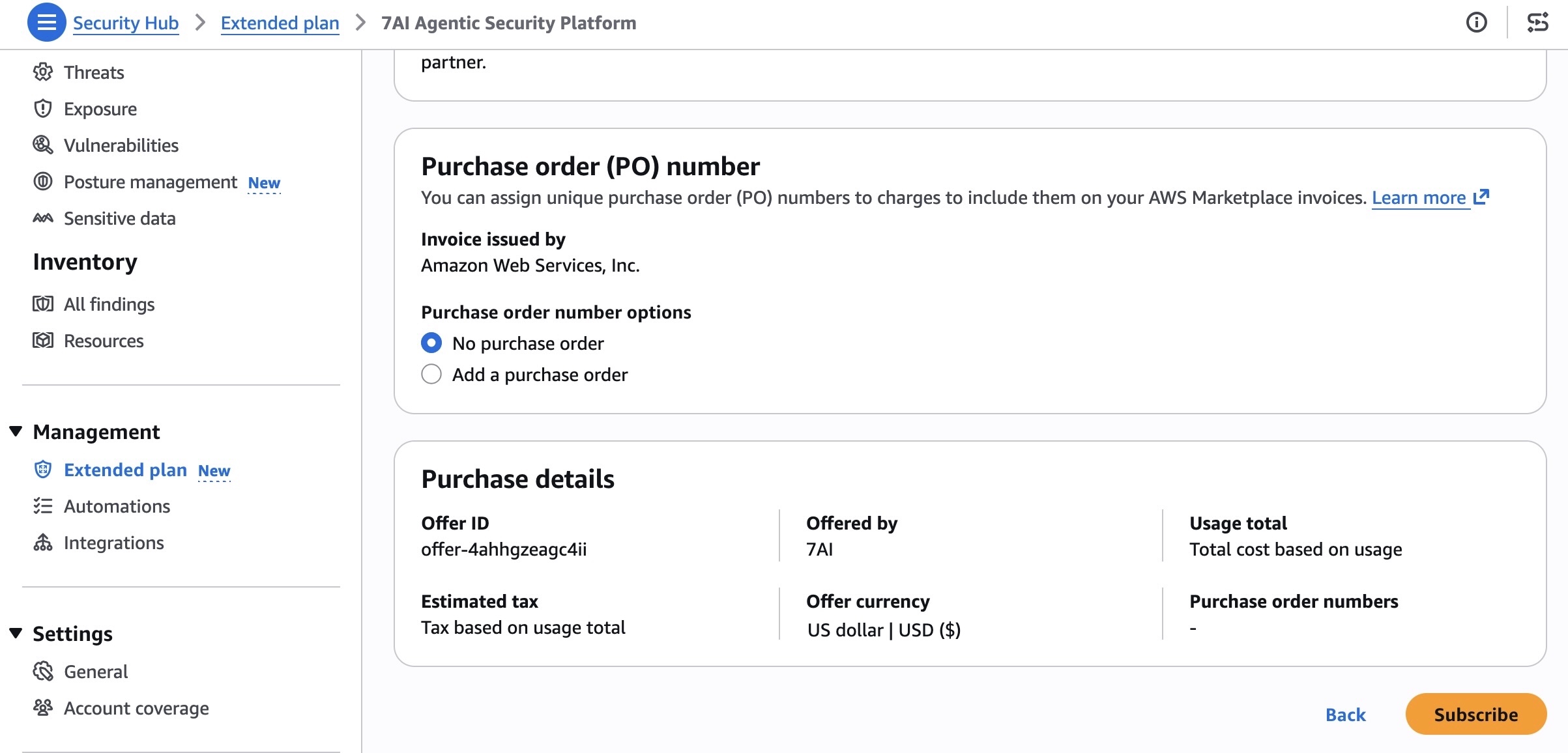 You can review details of each partner offering directly in the Security Hub console and subscribe. When you subscribe, you’ll be directed to an automated on-boarding experience from each partner. Once onboarded, consumption-based metering is automatic and you are billed monthly as part of your Security Hub bill.