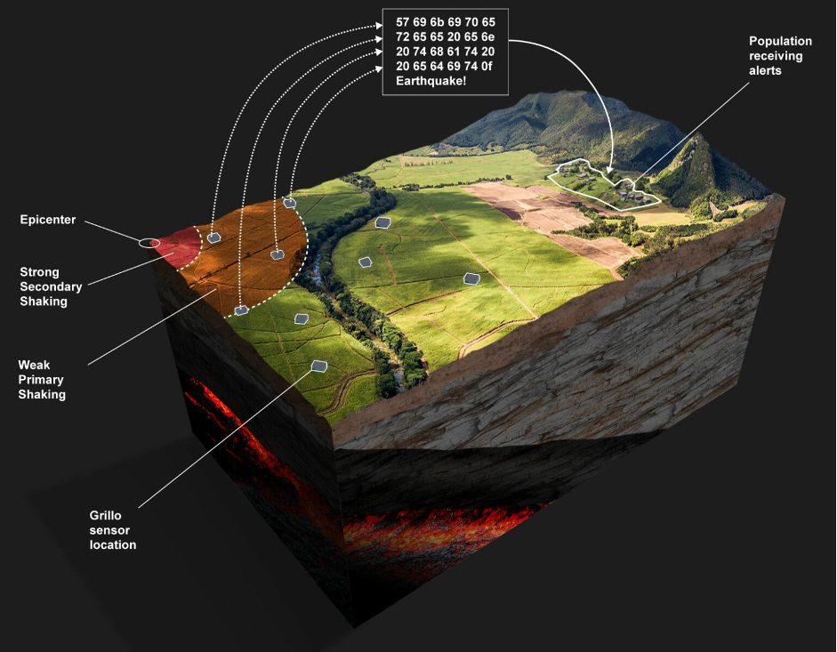 Grillo developed a low-cost EEW system using sensors and cloud computing. This system uses off-the-shelf sensors that are placed in buildings near seismically active zones. Grillo sensors cost approximately $300 USD, compared to the traditional seismometers that cost around $10,000 USD. Because of these inexpensive sensors, Grillo can offer a higher density of sensors, which reduces the time needed to issue an alert and gives people more time for action. This benefits the population because higher density increases the accuracy of the location detection, reduces false positives, and reduces times to alert.