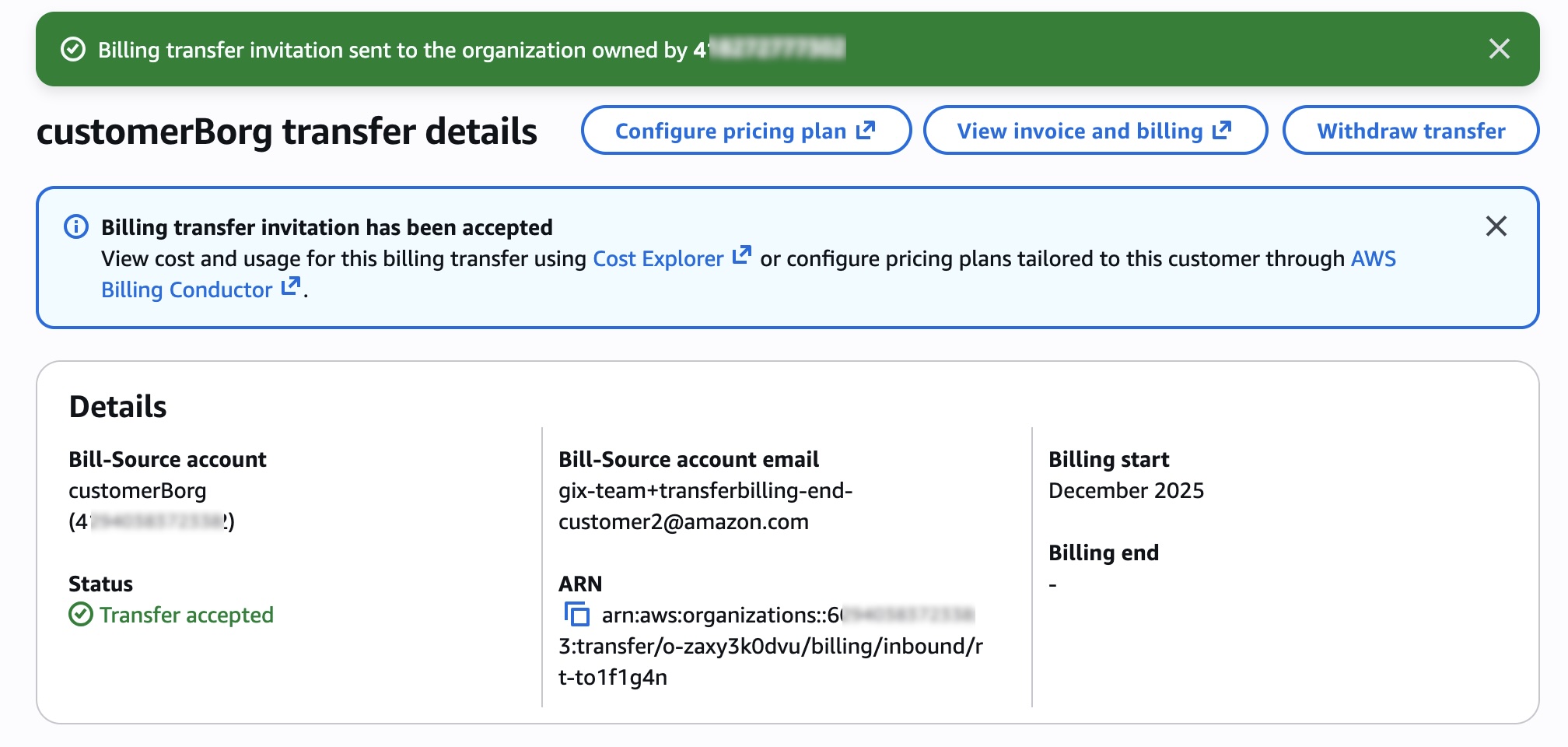To learn more about details, visit Billing Transfer in the AWS documentation.