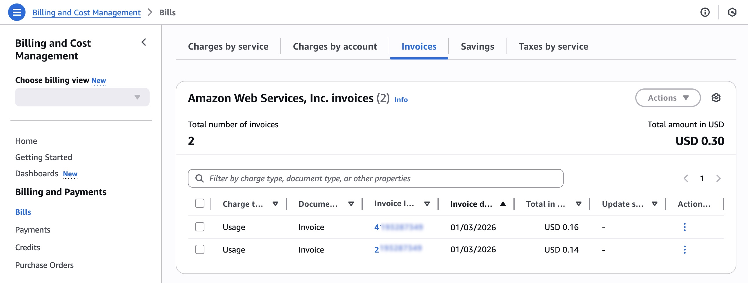 After your billing transfer begins, the bill-transfer account will receive a bill at the end of the month for each of your billing transfers. To view transferred invoices reflecting the usage of the bill-source accounts, choose the Invoices tab in the Bills page.